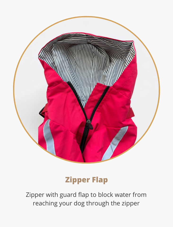 The high quality zipper blocks wind and water from reaching your dog through the zipper.